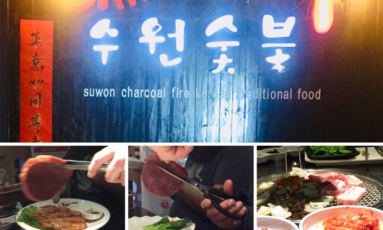 Zur Abwechslung gingen wir heute mal in ein koreanisches Restaurant. Das Essen war ausgezeichnet, der Grill mitten im Tisch, voll cool. Zum Schneiden des Fleisches…