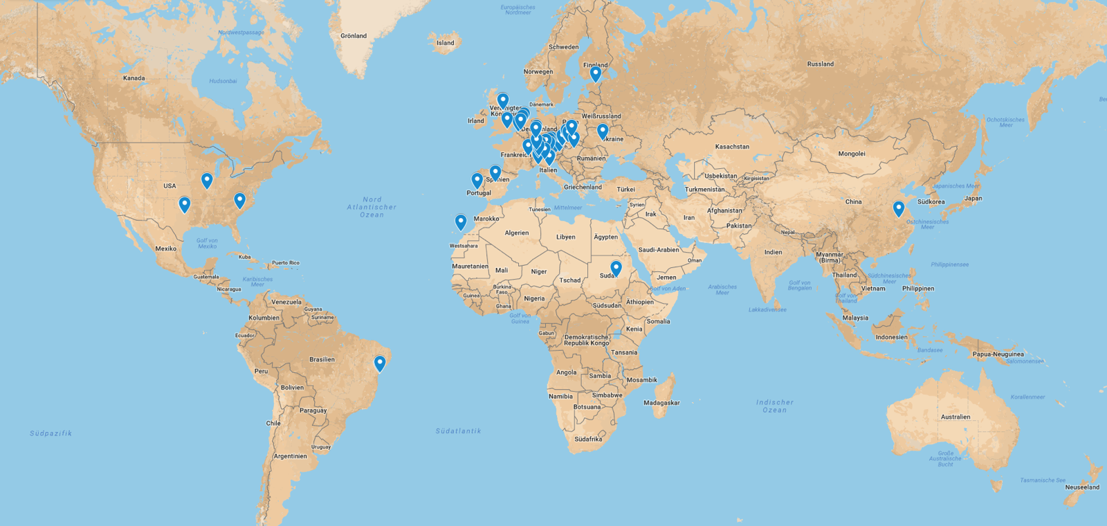 Hier hab ich mal versucht, die Orte zu markieren, die ich schon mal besucht habe. Ist sicher noch nicht vollständig. Wenn mir wieder was einfällt, dann werd ich es nachtragen.