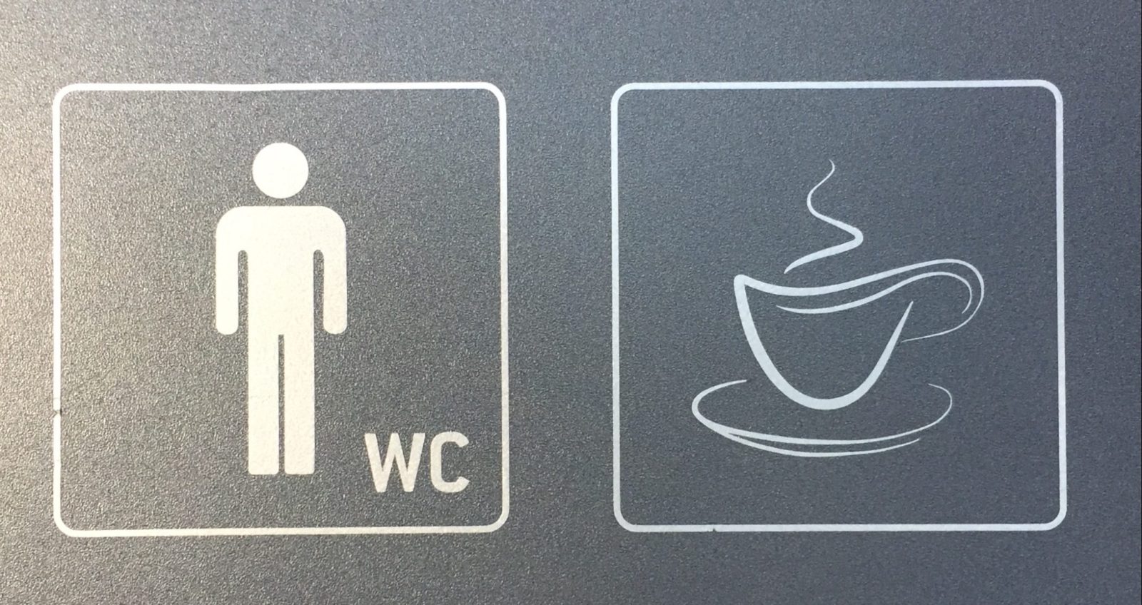 Geniales WC-Schild beim Kunden. War leider verschlossen. Hätte schon gerne gesehen, wie das Café-Klo funktioniert.